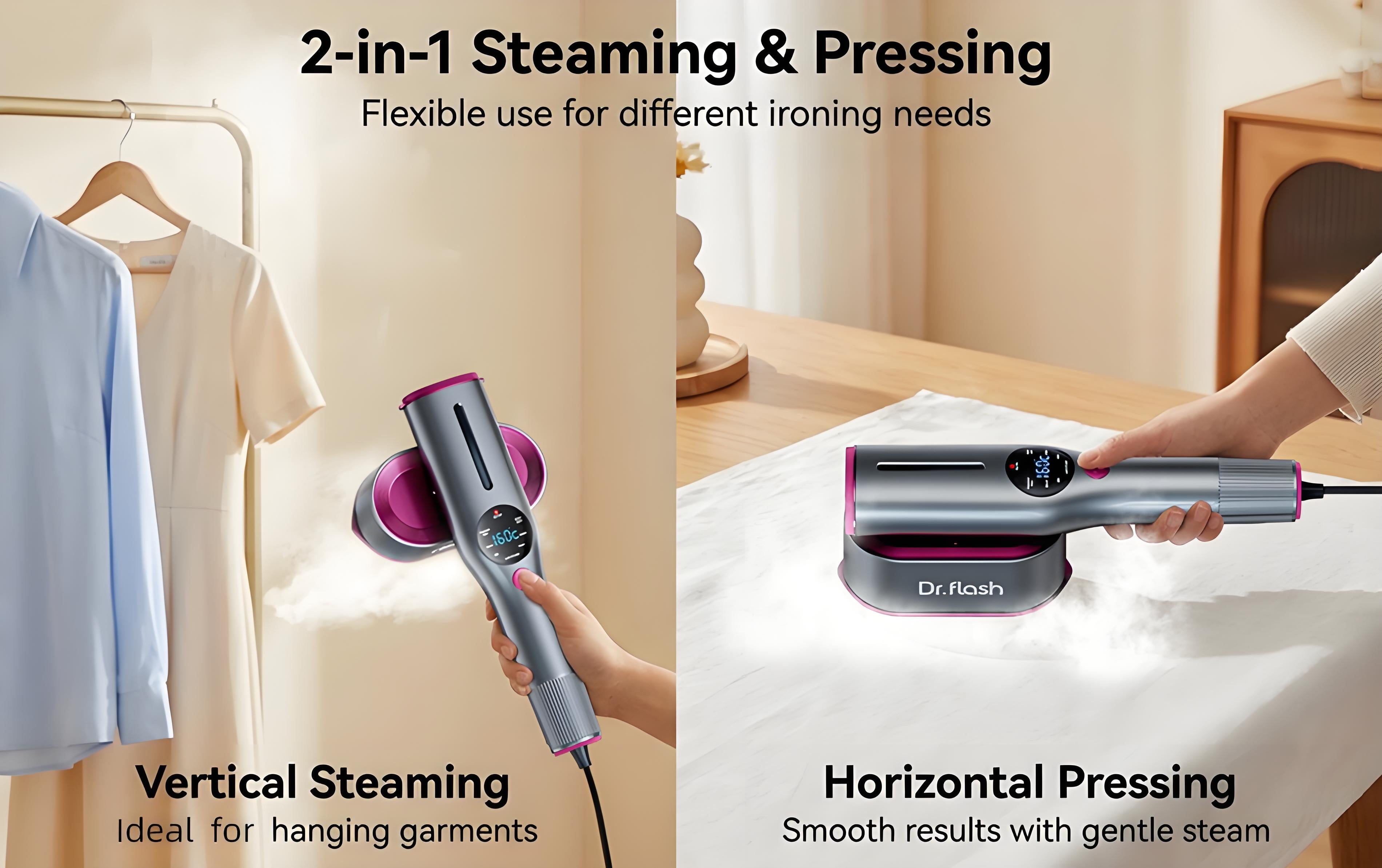 Provides up to 20 minutes of continuous steaming—enough for 6+ garments in one go. The anti-leak design ensures safe use at any angle.