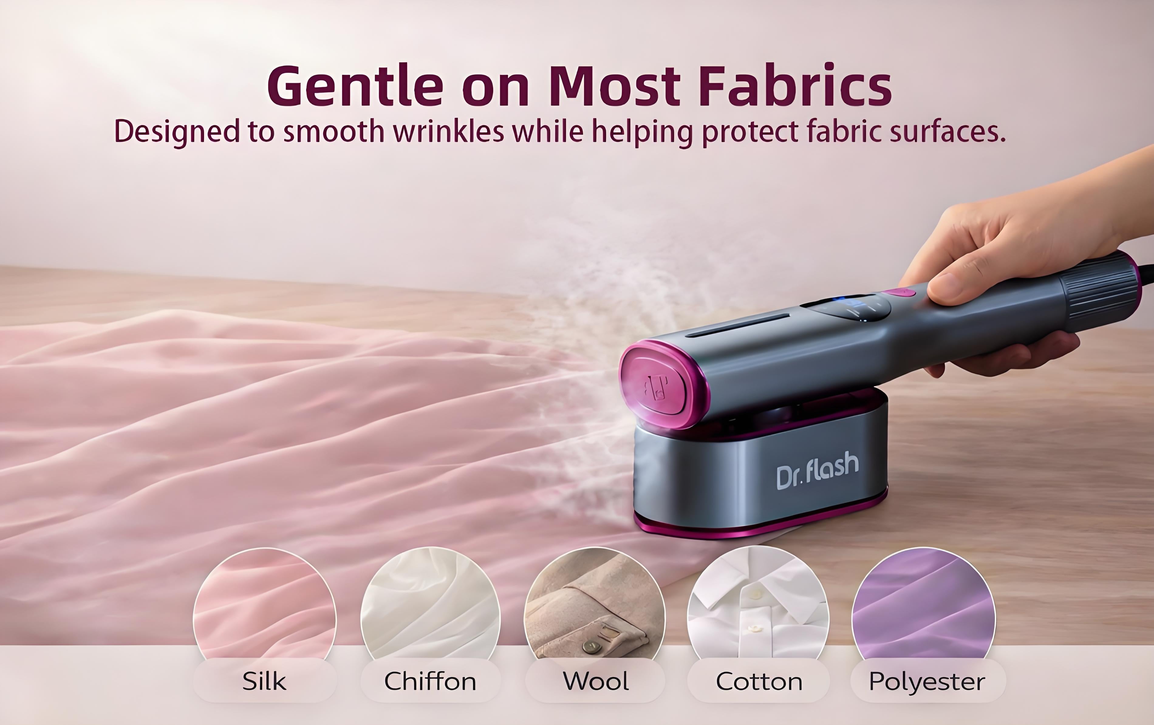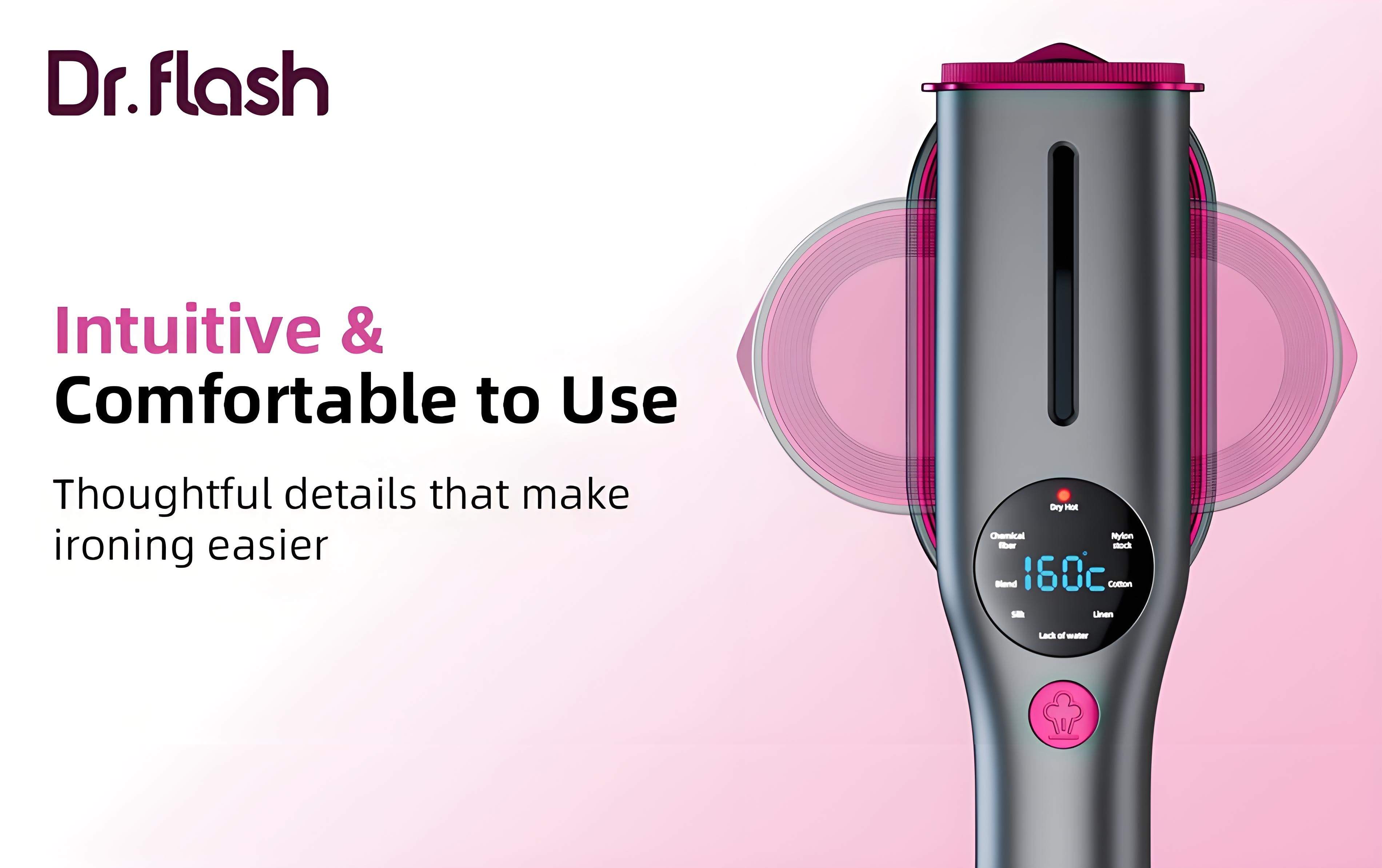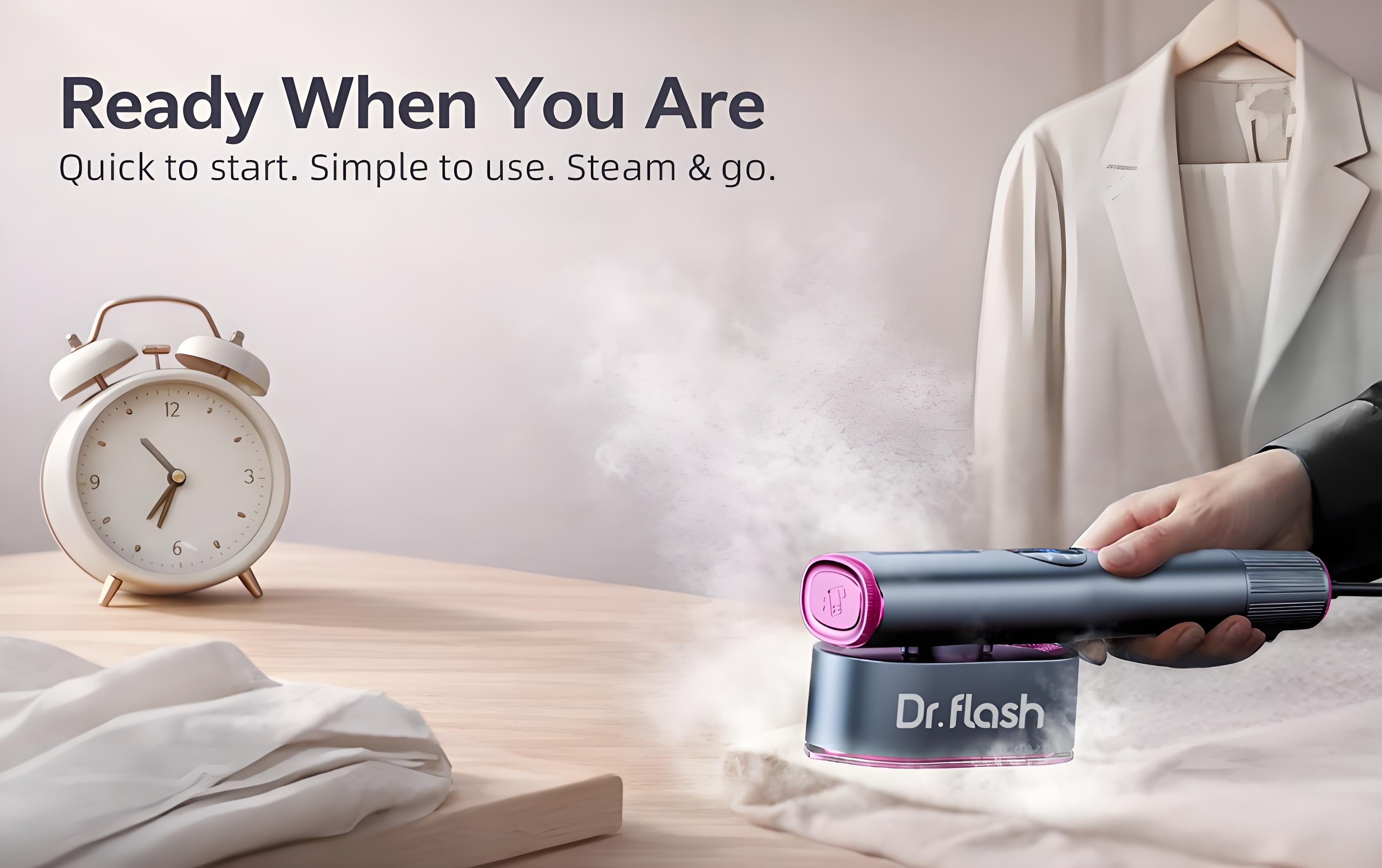 Dr.Flash™ heats up in just 30 seconds, so you can start steaming your clothes almost instantly — no long waiting times.
